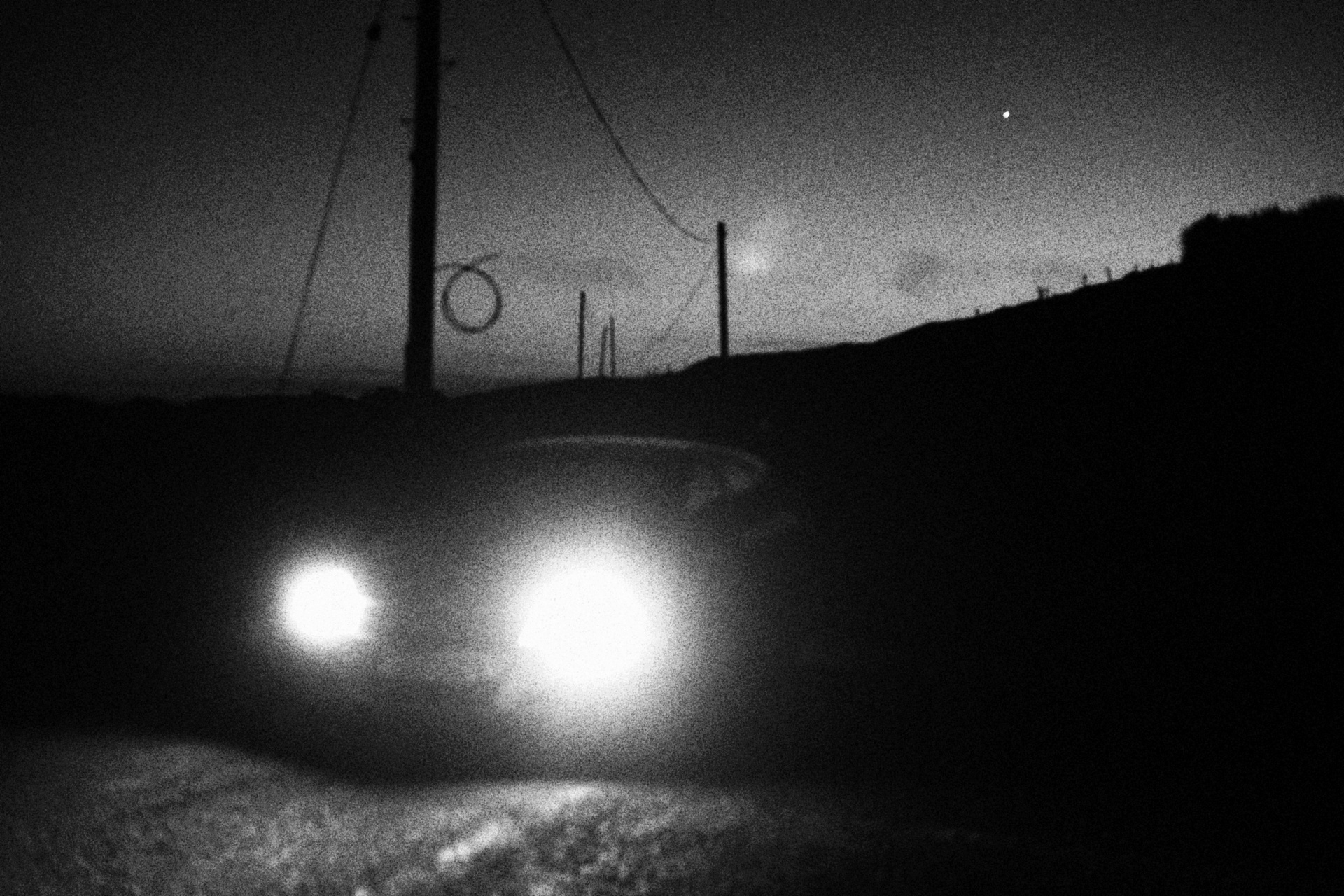 Most of the light in these images comes from the moon, from a few street lamps, or sometimes from passing car headlights. Because of this, things appear and disappear. Familiar places become strange. Houses, roads, and objects lose their normal meaning. Light and darkness break things apart, and it becomes harder to understand what you are looking at.